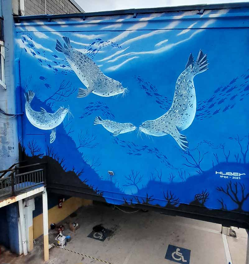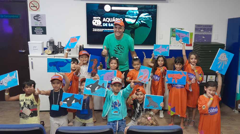 Santista, nascido em 1975, o artista plástico Alexandre Huber vem dedicando sua arte a favor da Cultura Oceânica e suas criaturas maravilhosas, buscando nos jovens e crianças os Futuros Guardiões dos Oceanos.